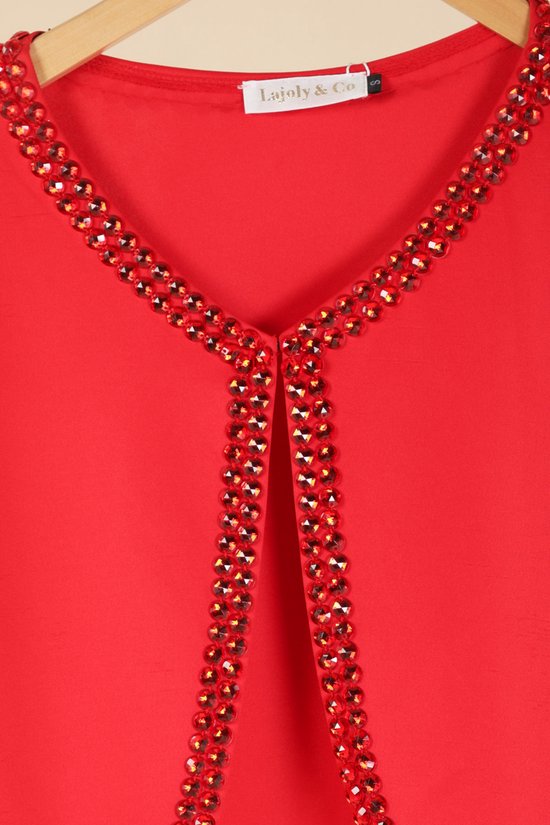 Beau gilet rouge avec des pierres. Idéal à combiner pour les vacances ou autres occasions.