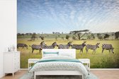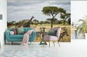 Girafes et zèbres ensemble sur les savanes du Parc National du Serengeti papier peint photo vinyle largeur 420 cm x hauteur 280 cm - Tirage photo sur papier peint (disponible en 7 tailles)