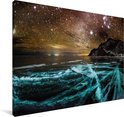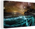 Glace bleue et un beau ciel étoilé sur le lac Baïkal en Russie Toile 180x120 cm - Tirage photo sur toile (Décoration murale salon / chambre) XXL / Grand format!