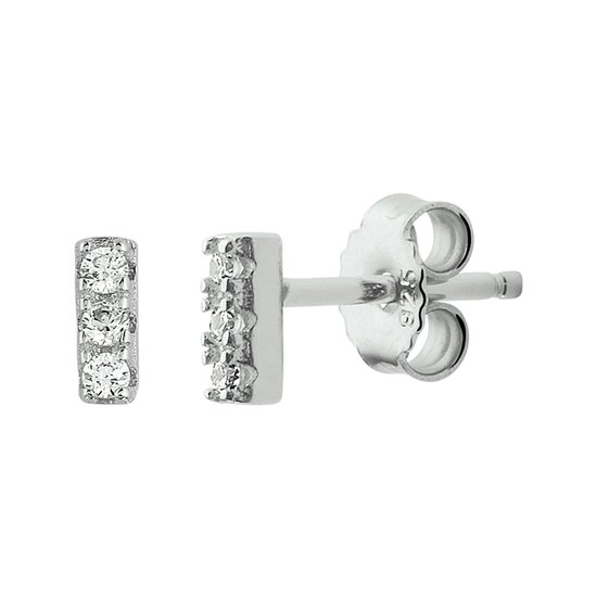 Boucles d'oreille clous en argent 925 rhodié en forme de barrette ornée d'une rangée de magnifiques zircones. Les boucles d'oreille clous ont une taille de 5 x 1,7 mm.