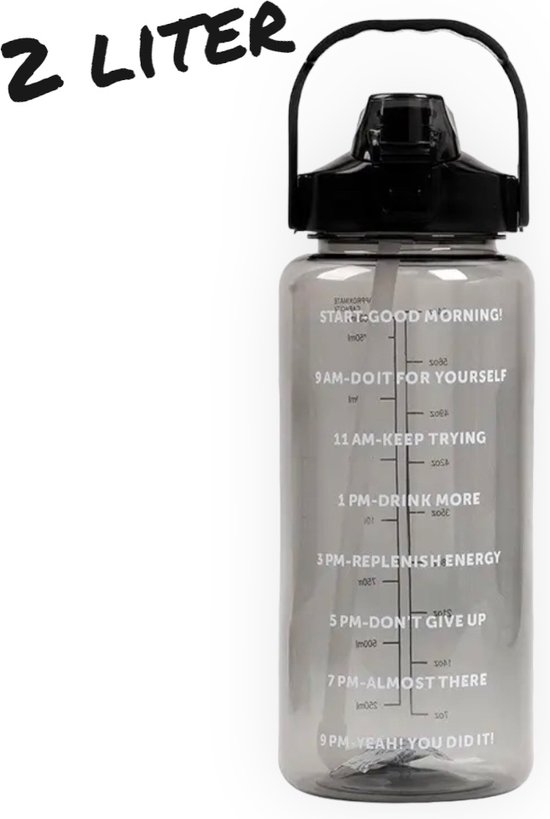 Un gobelet de 2 litres avec marqueurs de temps est un moyen pratique et motivant de garantir que vous buvez suffisamment d'eau tout au long de la journée. Ces tasses sont conçues avec des marqueurs de temps sur le côté, qui vous rappellent la quantité d'eau que vous devez boire à différents moments de la journée. Voici un descriptif :