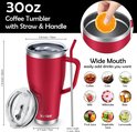 Gobelet isotherme avec paille 850 ml - Mug de voyage en acier inoxydable avec 2 couvercles - Mug à café de voyage pour boissons chaudes et froides
