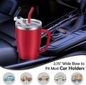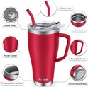 Cette tasse thermique avec paille et poignée est parfaite pour les déplacements et s'adapte à la plupart des porte-gobelets de voiture. Grâce au revêtement durable et résistant aux rayures, la tasse reste comme nieuw , même après une utilisation fréquente. Le couvercle spécial garantit qu'aucune fuite de liquide et que votre boisson reste en sécurité.