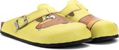 Des chaussons jaunes avec un imprimé chien qui font ressortir votre âme d'enfant ! La forme la plus amusante de pantoufles faites à la main entièrement fabriquées à partir de matériaux écologiques. Sabots pour femmes imprimé chien en cuir végétalien.