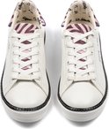 Le doux sourire de nos amis préférés entre les couleurs blanc et rouge. L'enthousiasme de ces chats augmente votre énergie. Baskets à lacets imprimé chat en cuir vegan blanc.