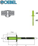 GOEBEL® - 250 x Rivets aveugles 4,8 x 20 mm - Inox A2 / Inox A2 - Tête large - STANDARD - 7034148200 - Rivet aveugle