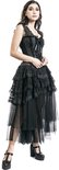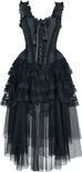 Gothicana Robe gothique noire mi-longue avec corsage Femme - L