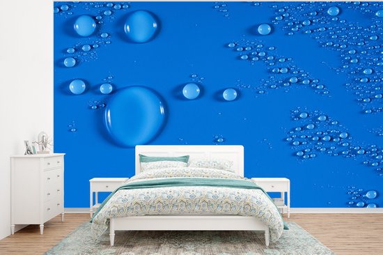 Gouttes sur un fond d' fotobehang bleu vif