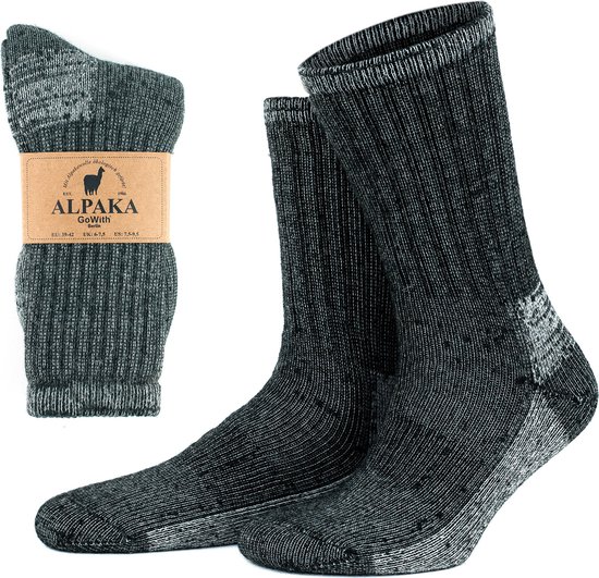 GoWith - chaussettes en laine - chaussettes en alpaga - 2 paires - chaussettes en laine pour diabète - éponge complète - chaussettes maison - chaussettes chaudes - chaussettes d'hiver - chaussettes thermiques - chaussettes cadeaux - taille 35-38