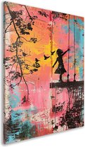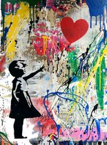Graffiti Banksy - Balloon Girl - Impression sur toile Premium 48x67,5 cm - Décoration murale