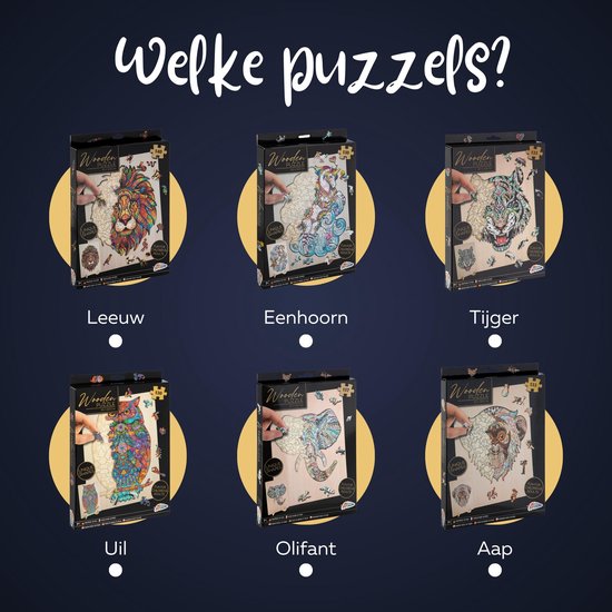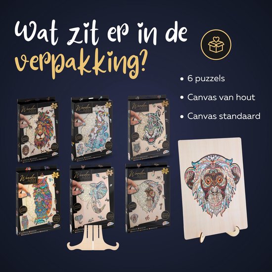 Ben vous prêt pour une nouvelle façon stimulante de casse-tête ? Avec cette méga offre, vous recevrez chez vous pas moins de 6 types de puzzles différents. La bonne chose à propos de ces puzzles en bois de Grafix est que chaque pièce de puzzle a une forme unique, d'un animal ou d'une chose. Ensemble, ils forment un beau puzzle unique en forme d'animal !