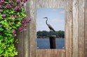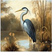 Grand héron sur un poteau affiche de jardin toile lâche