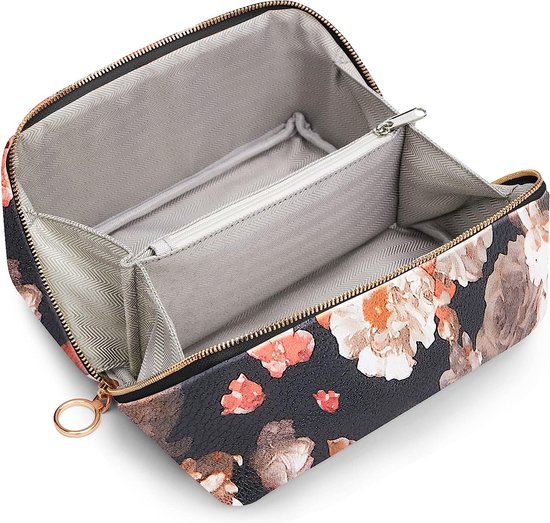 Trousse de toilette pour femme de grande capacité, trousse à cosmétiques, trousse de maquillage, trousse de maquillage de voyage avec compartiments, trousse à crayons (fleur noire-2)