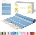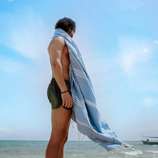 [Meilleure offre] Serviettes de hammam Premium 100% pur coton. Particulièrement léger et doux sur la peau. Soigneusement emballée dans une élégante boîte de rangement, parfaite comme serviette de plage, serviette de hammam, serviette de bain, serviette de sauna, peshtemal, serviette de salon, serviette de pique-nique, serviette de spa, serviette de bien-être, paréo, serviette de voyage, serviette de sport, serviette de yoga Coffret cadeau : un cadeau vaut autant que l'amour avec lequel il est offert. Les couleurs de nos serviettes de plage sont l'expression des sentiments de la vie. Partagez ceci avec votre bien-aimé. L'élégant coffret cadeau complète l'expérience cadeau. [Serviette à jambon extrêmement légère, absorbante et à séchage rapide] Notre serviette de plage présente un énorme avantage par rapport à une serviette en tissu éponge : elle absorbe l'humidité tout aussi rapidement, mais est nettement plus légère et peu encombrante. Le tissu en coton peut être facilement enroulé et ne prend pratiquement pas de place dans le sac de vacances ou le sac de plage. Il sèche beaucoup plus rapidement à l'air [Sans plastique et respectueux de l'environnement] Aujourd'hui, l'emballage de nos produits est déjà constitué de papier recyclable. Nous utilisons des boîtes de rangement en papier élégantes et de haute qualité, parfaites comme cadeaux. [Des années de tradition] La serviette de bain tissée avec amour a ses origines en Tunisie et est utilisée depuis des générations comme vêtement ou serviette de sauna dans le sud et l'est de la Méditerranée. Dans nos usines familiales en Tunisie, les serviettes de plage sont fabriquées avec un tissage soigné à partir des meilleurs matériaux locaux et jouissent toujours d'une grande popularité auprès des petits et des grands.