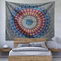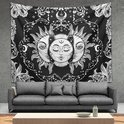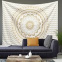 Grande tapisserie 200 x 150 cm, tapisserie mandala en tissu bohème hippie, couverture bohème soleil et lune, art mural pour décoration de la maison, chambre, dortoir, salon, plage (Mandala D)