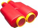 - Ces grandes jumelles rouges sont en plastique et ont une taille de 300 mm.