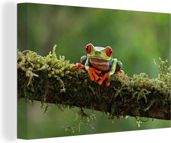 Grenouille d'arbre aux yeux rouges sur toile de branche couverte 2cm 150x100 cm - Impression photo sur toile (Décoration murale salon / chambre) / Peintures sur toile animaux sauvages