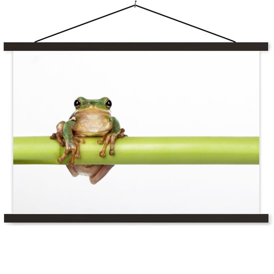 Grenouille devant fond blanc affiche textielposter lattes noir 150x100 cm