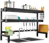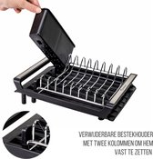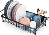 Groot égouttoir à vaisselle pour évier de cuisine - égouttoir d'évier avec porte-couverts et support extensible antirouille noir