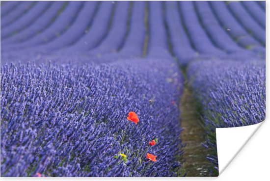Gros plan d'un coquelicot dans un champ de lavande 60x40 cm / Poster Fleurs