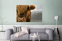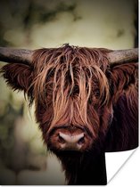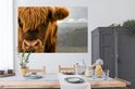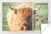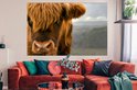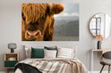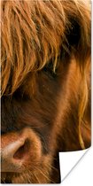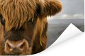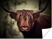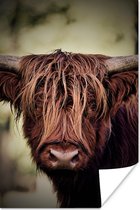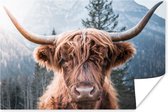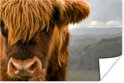 Gros plan d'un montagnard écossais avec les montagnes en arrière-plan Poster 180x120 cm - Tirage photo sur Poster (décoration murale salon / chambre) / Poster Animaux sauvages XXL / Groot format!