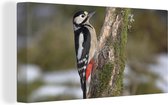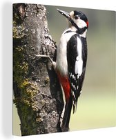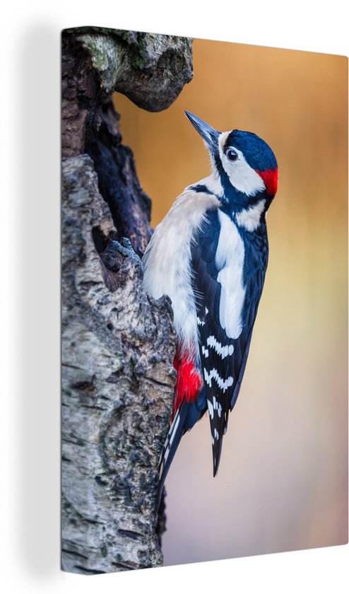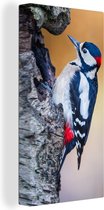 Gros plan d'un pic épeiche sur un tronc d'arbre 20x30 cm - petit - Tirage photo sur toile (Décoration murale salon / chambre)