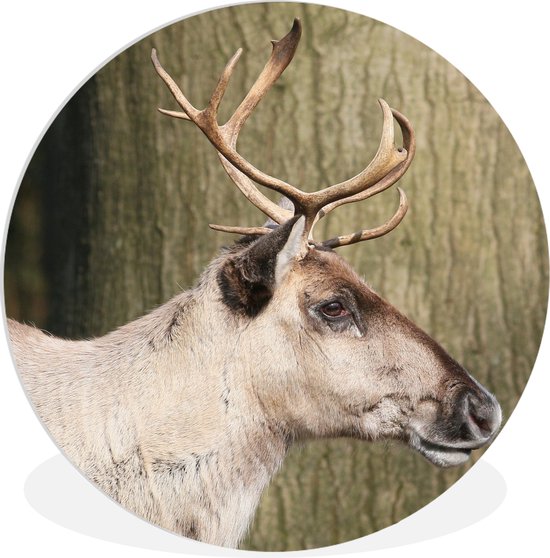 Gros plan d'un renne contre un arbre Assiette en plastique cercle mural ⌀ 140 cm