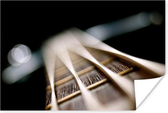 Gros plan des cordes d'une guitare basse Poster 120x80 cm - Tirage photo sur Poster (décoration murale salon / chambre)