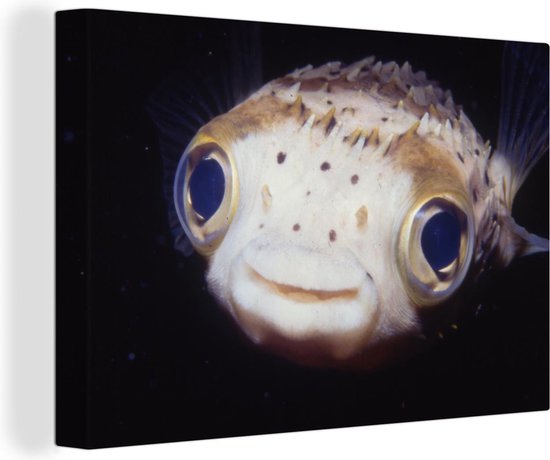 Gros plan poisson-globe 60x40 cm - Tirage photo sur toile (Décoration murale salon / chambre) / Peintures sur toile animaux sauvages