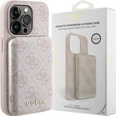 Guess - 4G - Ensemble de coques Métal Logo pour iPhone - 15 - Pro - + - 5000mAh - MagSafe - power bank - noir