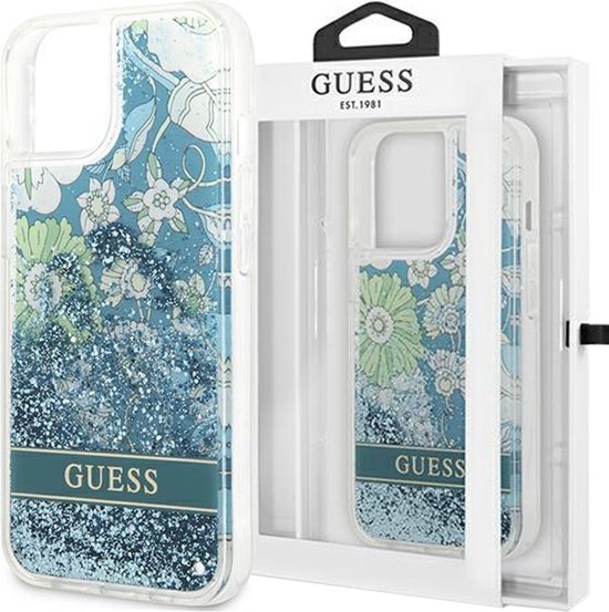 - 1 x Guess GUHCP14MLFLSN iPhone 14 Plus 6,7" coque rigide vert/vert Flower Liquid Glitter