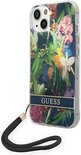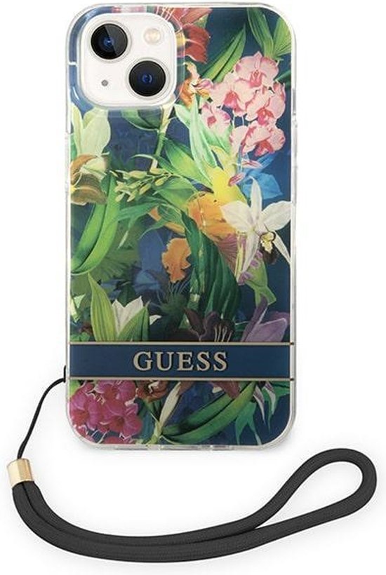 Guess iPhone 14 Plus 6.7" Étui rigide bleu Flower Strap