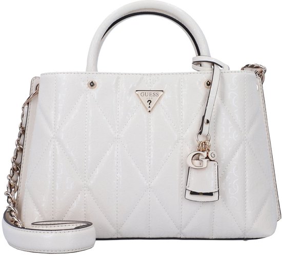 GUESS sac à main sac à épaule bandoulière Aldina Girlfriend Satchel Cream White écru