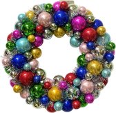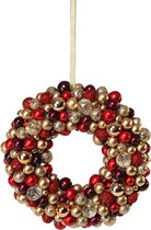Guirlande de Noël/couronne de porte - Boules de Noël en plastique - rouge/or - 35 cm