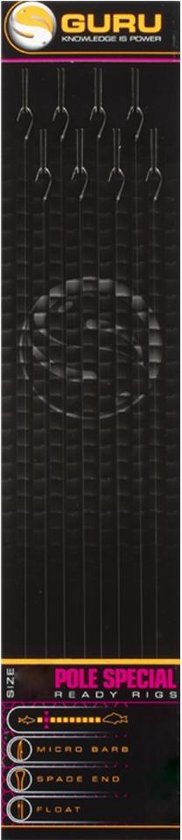 Guru Pole Special Rigs 8 - Lignes inférieures - 20cm - Hameçon 16 - 0.11mm - 8 Pièces - Zwart
