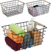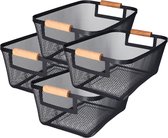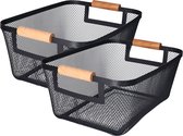 H&S Collection Panier de rangement - avec poignées - noir - métal - 35 x 23 x 16 cm - corbeille en fil