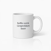 Tasse à café humoristique – « Le Café d'abord, les conversations ensuite » – Tasse avec texte en néerlandais – Cadeau pour les amateurs de café et les gémissements matinaux – Céramique Witte 330 ml