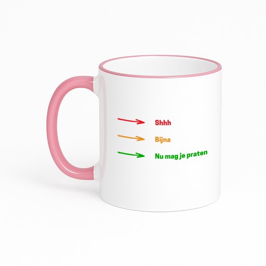Hacebo® - Chut, presque, maintenant tu peux parler tasse à café avec bord coloré rose - Citations - citations de personnes qui aiment - tasse à thé - tasse à café - texte drôle - citations - anniversaire - cadeau - cadeau - tasse à café - 330 ML