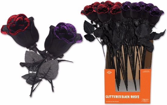 L'art d'Halloween rose noir avec du violet et des paillettes. La fausse rose a une longueur d'environ 60 cm.