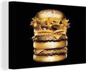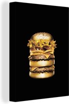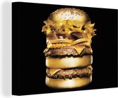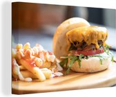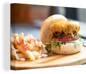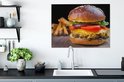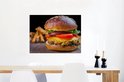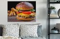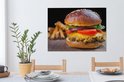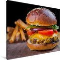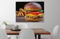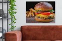 Hamburger avec frites en arrière-plan Toile 80x60 cm - Tirage photo sur toile (Décoration murale salon / chambre)
