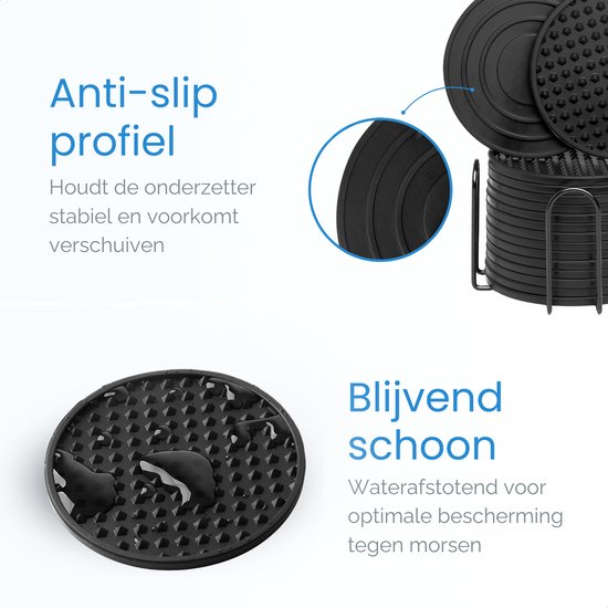 Grâce au support inclus, vos sous-verres restent parfaitement au même endroit lorsque vous ne les utilisez pas. De cette façon, vous créez un look soigné et organisé dans votre cuisine, salle à manger ou salon. Le support permet également de présenter facilement les sous-verres sur la table lors d'un dîner ou d'un verre.