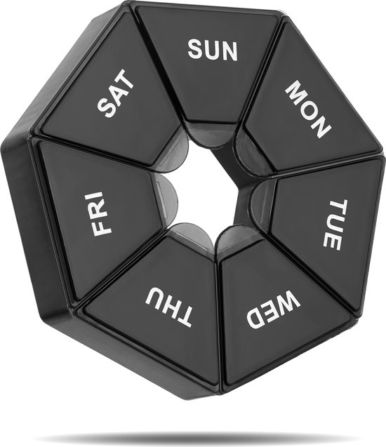 Hanamura Vital – Pilulier – 7 jours – Pilulier semaine – Klein avec grands compartiments – Zwart