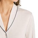 La chemise de nuit à manches longues de la série Natural Comfort vous enveloppe de fibres lyocell TENCEL 100% régulatrices d'humidité, respirantes et naturelles. Les boutons et le fil à coudre sont en polyester recyclé. Un col classique, une matière fluide et une jolie patte de boutonnage invitent à la rêverie. Un passepoil de couleur contrastée complète harmonieusement le design. Dormez et détendez-vous dans ces vêtements de nuit de nouvelle génération à la fois luxueux et durables.