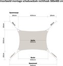 N.-B. : la toile d'ombrage est livrée sans matériel de montage. Pour le montage standard de cette toile d'ombrage, il s'agit de : 8720572201408 - Kit de montage de toile d'ombrage en acier inoxydable 4gardenz® / fixation de toile solaire 6 mm.