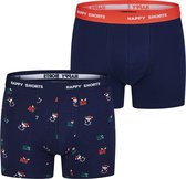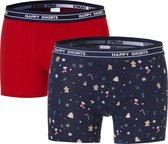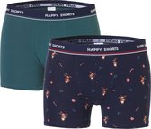 Le cadeau parfait pour les vacances. Set de 2 jolis boxers de Noël Happy Shorts . L'ensemble contient un caleçon avec imprimé et une couleur unie. Édition limitée et seulement temporairement disponible.