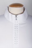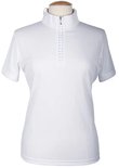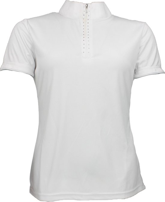 Chemise de compétition chic pour enfant, 100% micro polyester, manches courtes, avec boucles à nouer sur le col, fermeture éclair au col, finition strass le long de la fermeture éclair.
