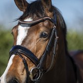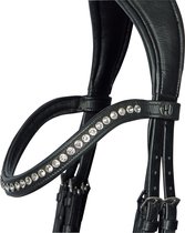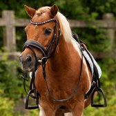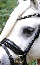 Bridon anatomique spécialement conçu pour les petits poneys chat A. Le bridon a une têtière anatomiquement rembourrée et coupée. La têtière garantit que le poney a moins de pression derrière les oreilles et sur la tête. La muserolle de forme anatomique avec un ajustement parfait réduit la pression sur le nez. La muserolle a de beaux détails scintillants et le frontal est un véritable accroche-regard avec les pierres de cristal luxueuses.La bride est livrée avec des rênes en cuir soft. -bridon anatomique-spécialement pour les petits poneys chat A-luxueux détails scintillants sur la muserolle-frontal avec de belles pierres de cristal