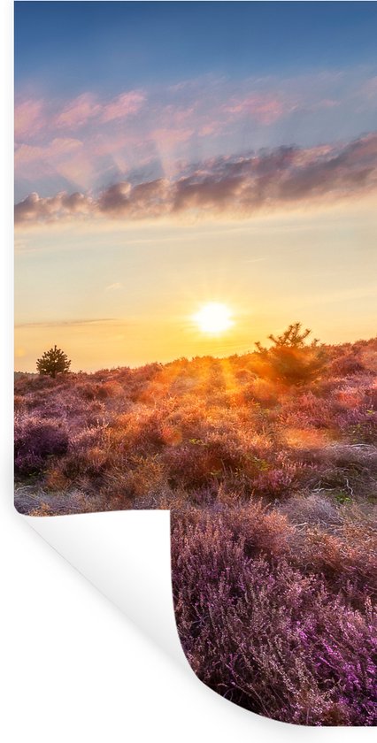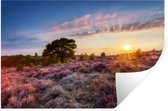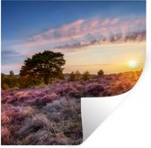Heather fleurissant pendant le coucher du soleil aux Nederland