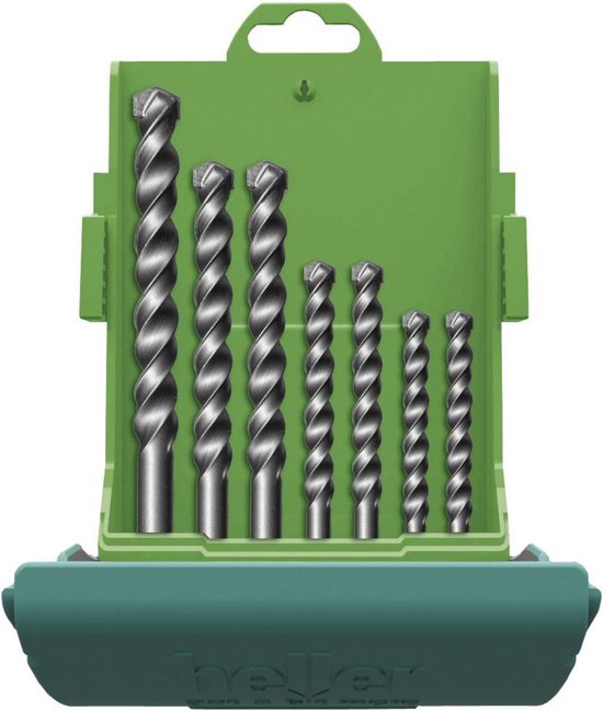 Heller 3015 18037 5 Carbide Steen-spiraalboorset 7-delig 4 mm, 5 mm, 6 mm, 8 mm, 10 mm, 12 mm Cilinderschacht 1 set(s)De hogesnelheidsboor - perfect voor gebruik in accuboormachines.Snelle afvoer van boorstof door spiraal met 4 groeven · Lange levensduur door stevige hardmetalen plaat en speciaal gehard oppervlak · Geoptimaliseerd voor regelmatig terugkerende werkzaamheden in metselwerk. · MAXXBOX van breukbestendig ABS materiaal.Gatdiameter: 4 mm, 5 mm, 6 mm, 8 mm, 10 mm, 12 mm · · Materiaal geschiktheid: Metselwerk, Steen, BetonØ 4/5/2 x 6/8/10/12 mm · MAXXBOX.