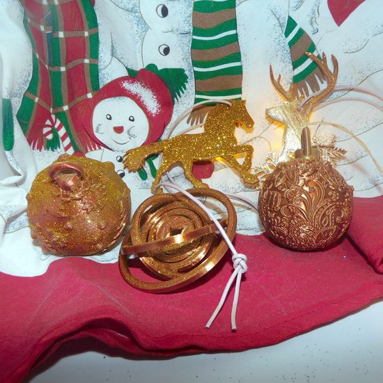 - Set de Suspensions pour sapin de Noël couleur bronze avec paillettes